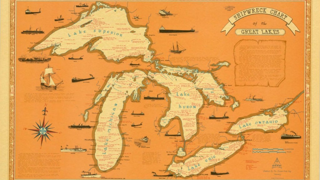 The relatively shallow waters found throughout the Great Lakes are notorious for shipwrecks, with an estimated somewhere between 6,000 to 10,000 ships and somewhere around 30,000 lives lost.