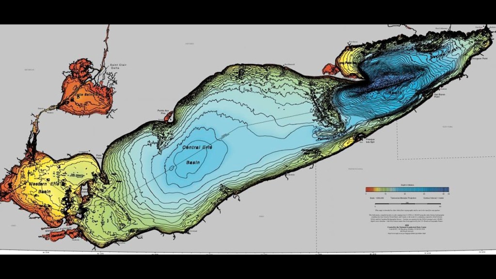 Lake Erie has an average depth of 63-feet, or 19-meters, and is divided into three basins.