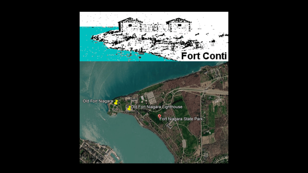The location we are given for Fort Conti is Old Fort Niagara where the Niagara River meets Lake Ontario.