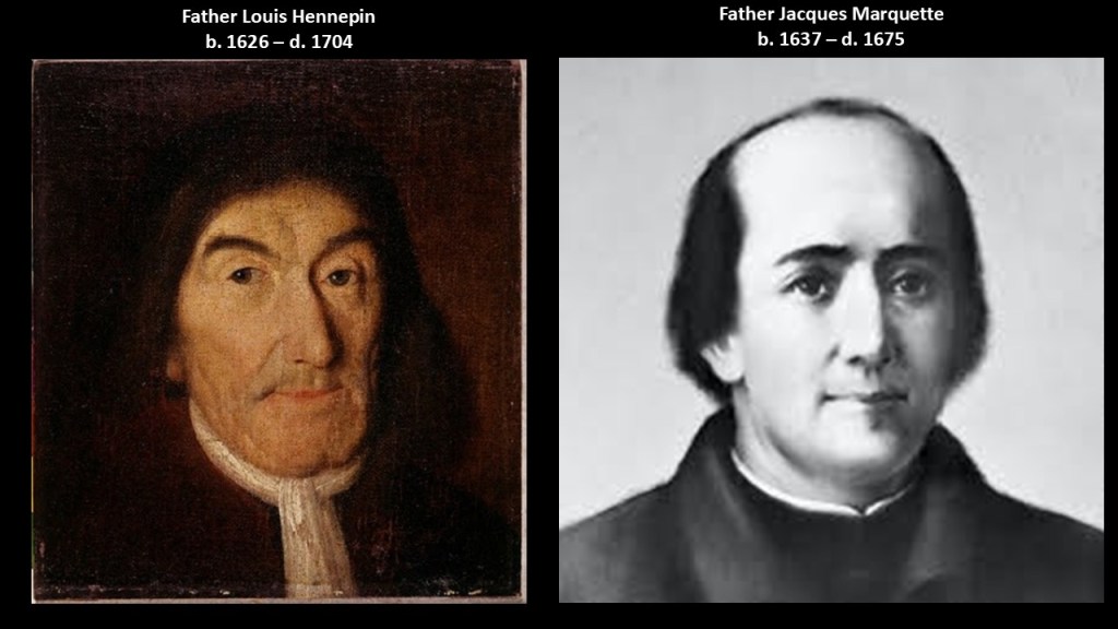 Father Hennepin was a contemporary of the French Jesuit Father Jacques Marquette, who explored all over Lake Superior, Lake Michigan and Green Bay in our historical narrative.