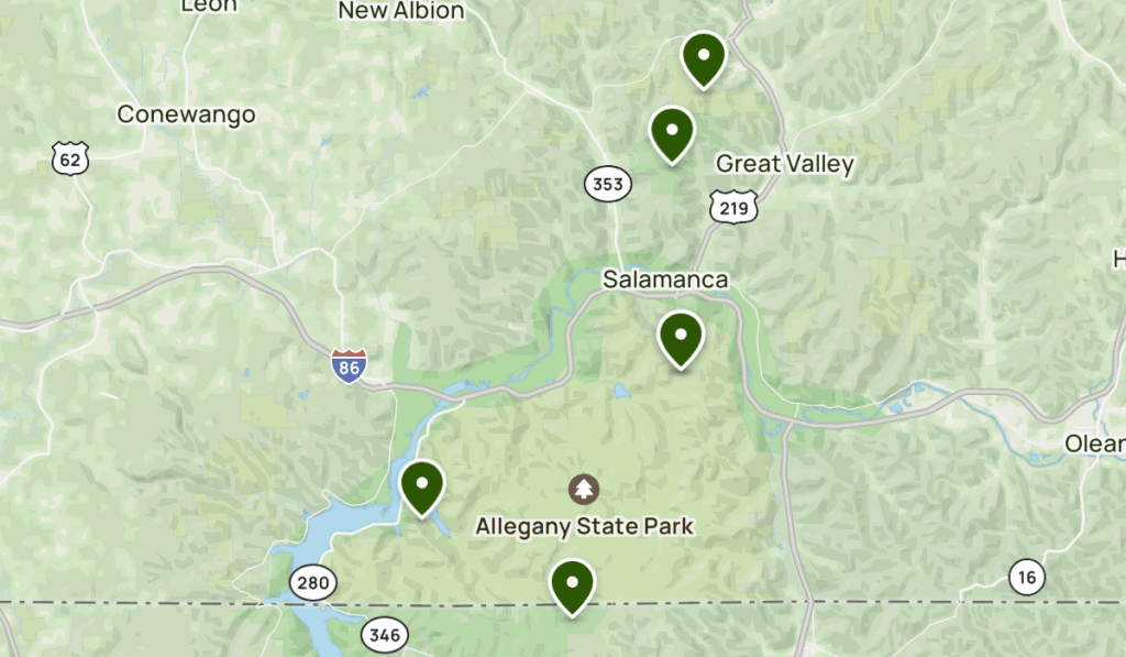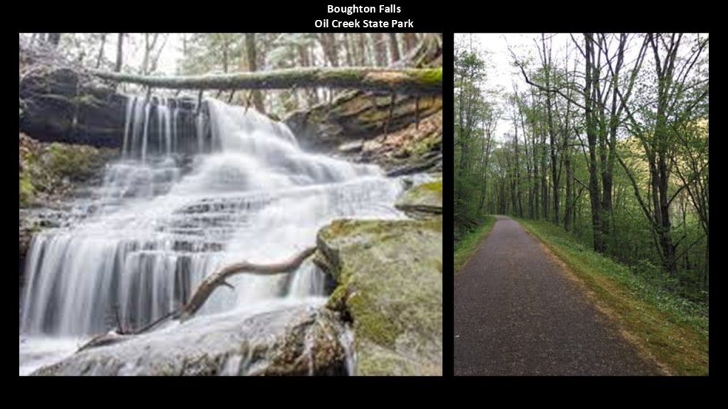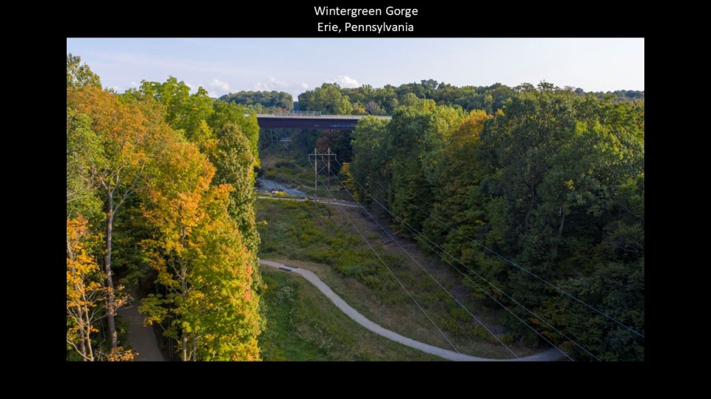 The Lehigh Gorge is described as a “steep-walled gorge carved by a river, thick vegetation, rock-outcroppings, and waterfalls characterize the state park.”