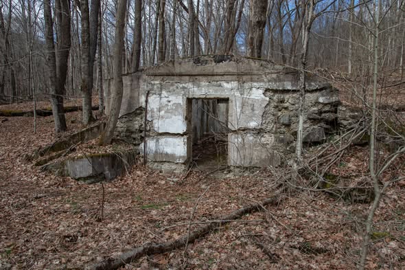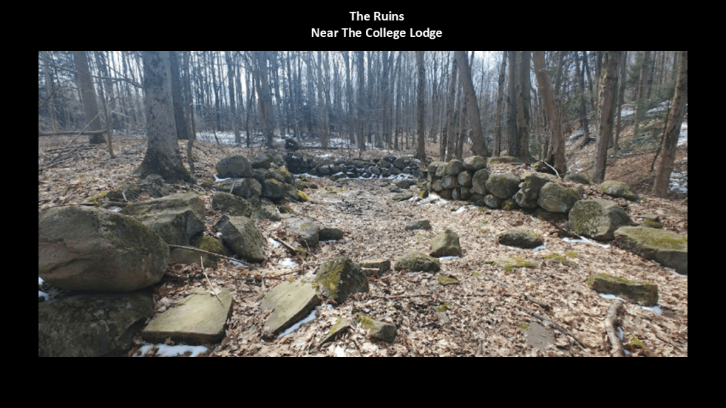 When dad was practicing, and I was young, I, instead of watching the games, I was always down off into the woods, right off the ball field, exploring. It was a really cool place, in more ways than one. What I remember is going down, down into the woods, and eventually finding really big stones to play in. They were really fun for a 6-, 7-, 8-, or whatever-year-old, to play in and around.