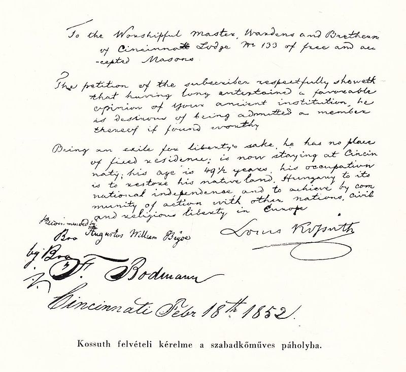 Previous Image Next Image 1852-kossuth-admission-to-the-freemason-grand-lodge-of-cincinnati-manuscript-from-the-university-of-szeged