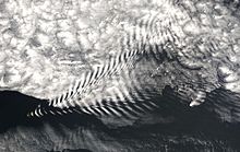 Here is a photograph of Lee Waves taken on Amsterdam Island. Lee Waves are atmospheric stationary waves, and are a form of internal gravity waves. Must be a reason as to why the geomagnetics of this island are studied.