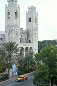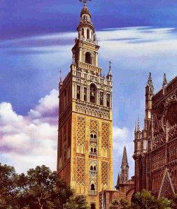 This is Seville Cathedral. Seville was the capital of Moorish Spain. In particular, note the double window design component of both of the cathedrals’ towers.