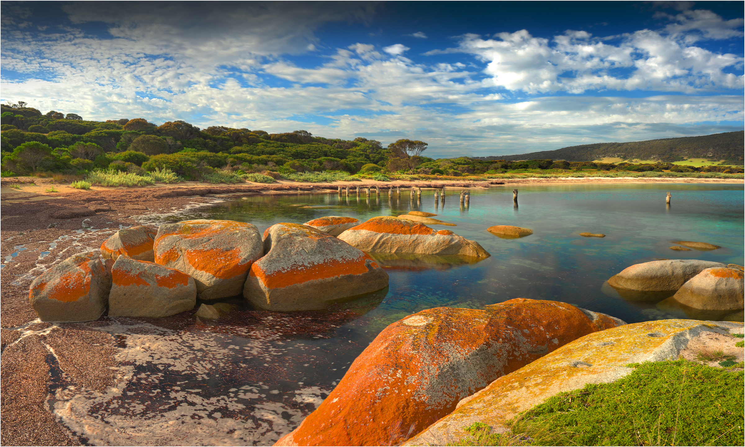 They are uninhabited except for wooden fishing villages supported on poles above the water.