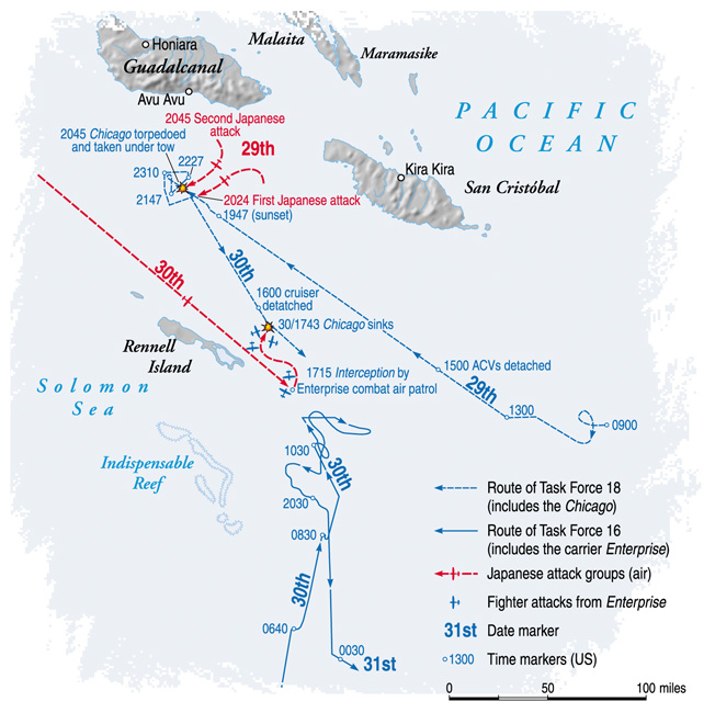 This was also the site of the last major naval battle of the Guadalcanal Campaign – known in history as the Battle of Rennell Island – and took place in January of 1943. In this battle, the Japanese Navy, in its efforts to evacuate Japanese forces from Guadalcanal, torpedoed the USS Chicago, one of the U. S. Navy’s heavy cruisers, and damaged the USS La Vallette, a naval destroyer ship. As result of this battle, the U. S. Navy pulled back from this area, and the Japanese finished their evacuation of Guadalcanal.