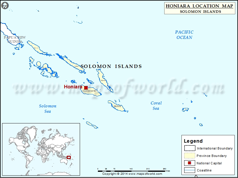Moving on to the main part of the Solomon Islands, we come to the capital of these islands, Honiara, located on the northwest coast of the island of Guadalcanal.