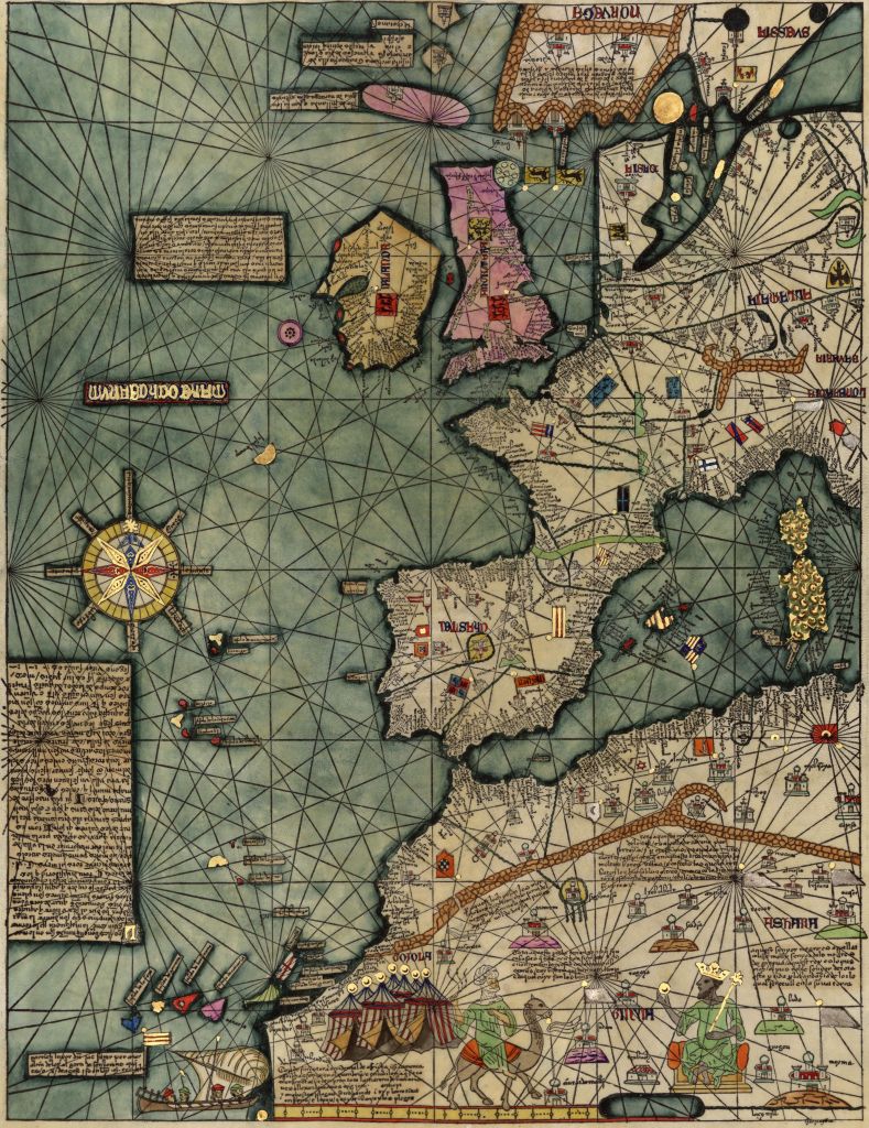 The Catalan Atlas was produced by the Master Map-maker Cresques Abraham, of the Majorcan Cartographic School, and is considered the most important map of the Medieval period in the Catalan language. It definitely looks like it is a map that shows specific planetary leylines!