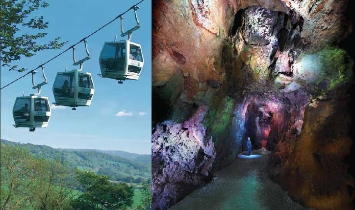 The Heights of Abraham in Matlock Bath are accessed by a steep hiking trail, or cable car, and has two caverns – the Great Masson Cavern pictured here, and the Great Rutland Cavern. They were both mined for lead ore and fluorspar up through the 1700s.