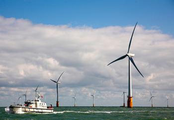 The world’s largest off-share wind farm is in the English Channel, off the coast of Kent, with 100 turbines covering an area of 13.5 square miles, or 35 square kilometers.