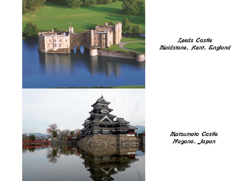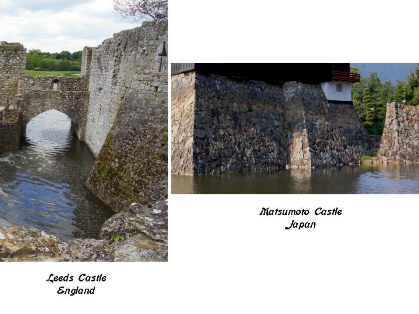 While obviously the design of Leeds Castle is European and Matsumoto Castle is Asian, I am struck by the similarity of the lay-out of the castles on artificial islands in a lake…
