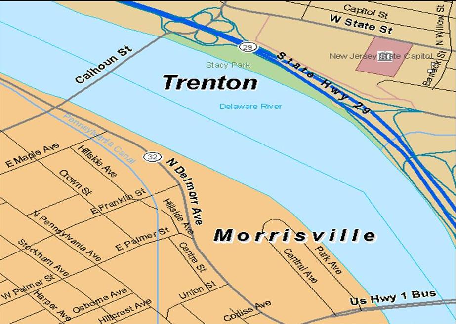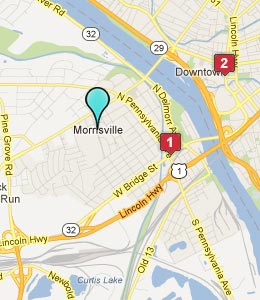 Next on the alignment, we come to Morrisville, a borough in Bucks County, located just below the Delaware River Falls, opposite the Delaware River from Trenton, New Jersey.