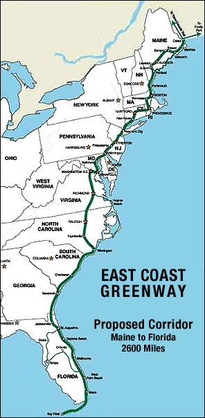 This bridge helps connect segments of the 3,000-mile-long East Coast Greenway, which runs from Calais, Maine, to Key West, Florida.