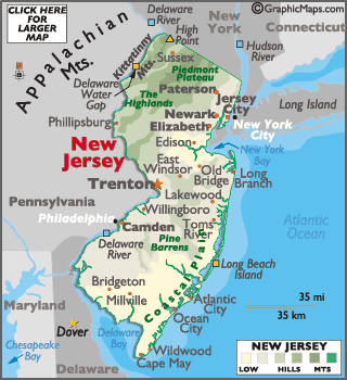 One last place in New Jersey that I would like to visit before I finish this post are the Kittatinny Mountains. They are roughly 70 miles, or 110-kilometers, north-northwest of Trenton, and slightly northeast of the Delaware River Gap.