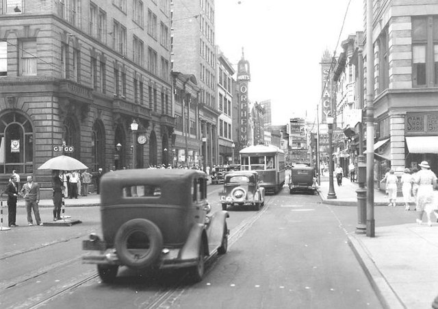 I found this historic photo of the Orpheum Theater on the left side of this street in Trenton.