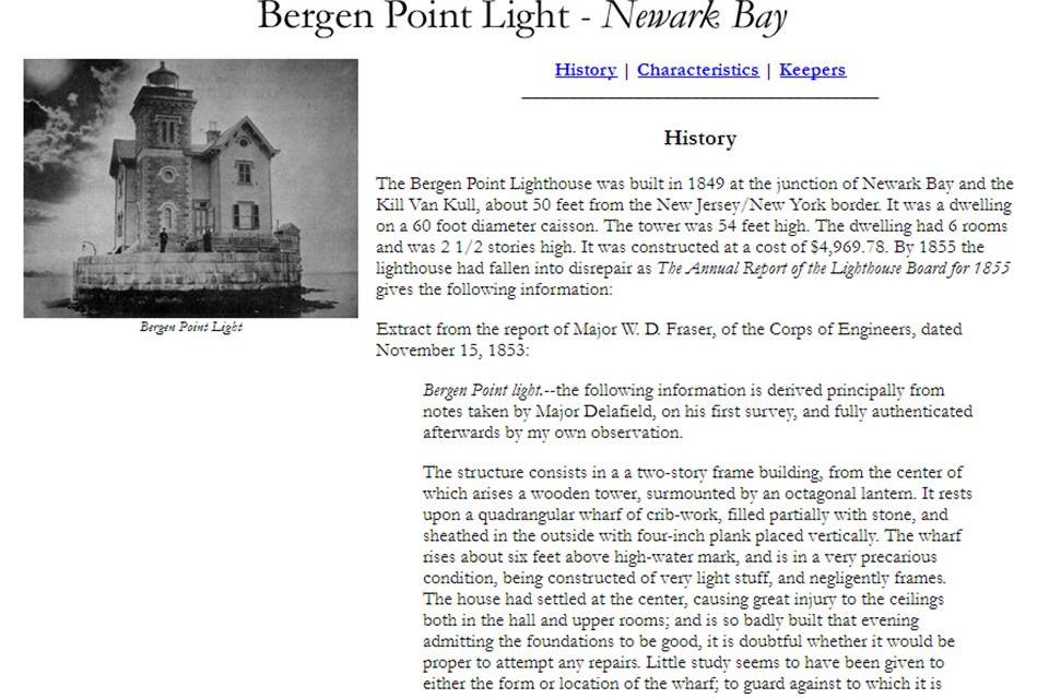 There are some real inconsistencies in information I read here on the Bergen Point Lighthouse. It was said to have been built in 1849, and already have fallen into disrepair by 1855. As early as 1853, only four years after the given construction date, Major Fraser of the Corps of Engineers, was describing its state as already precarious.