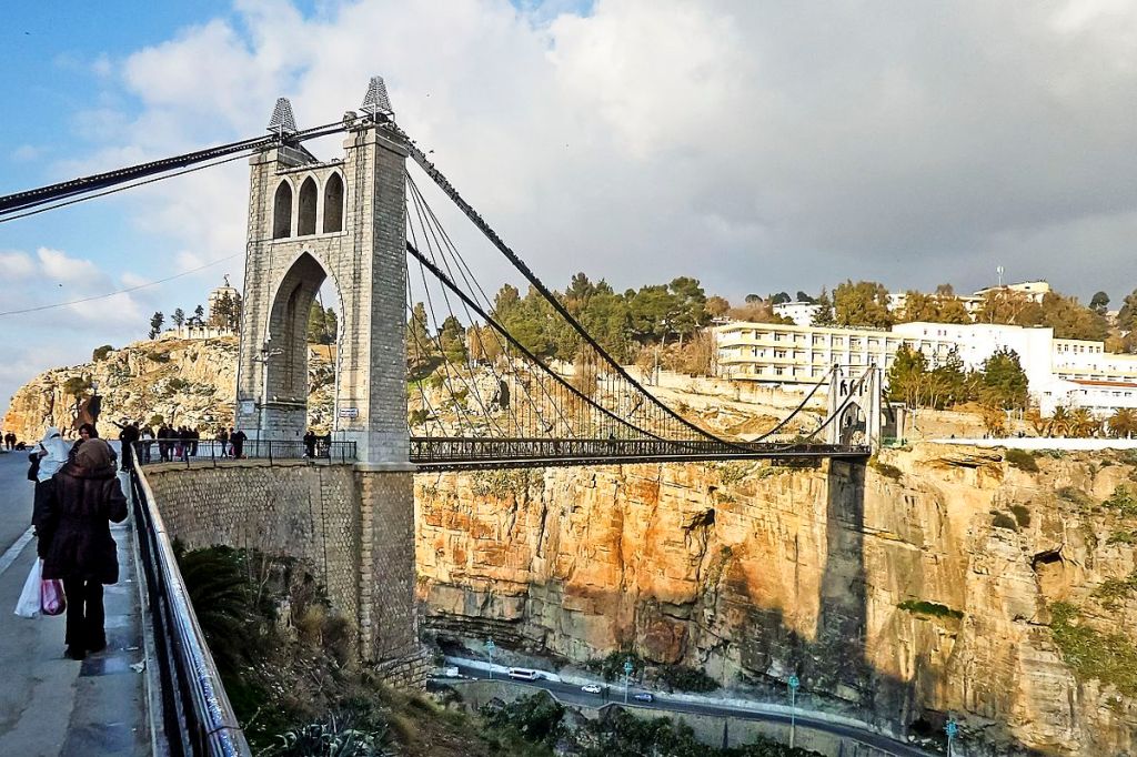 …and for comparison is the Sidi M’Cid Bridge, a suspension bridge in Constantine, Algeria said to have opened in 1912. Constantine is referred to as “The City of Bridges.”