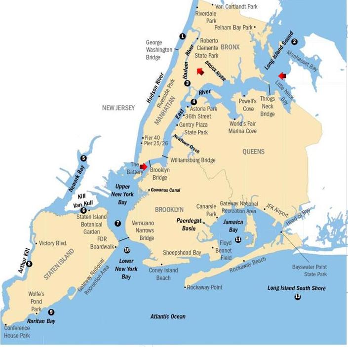 It is said to be fed by the waters of the Hudson River, coming into the bay between Liberty State Park in New Jersey, and Lower Manhattan.