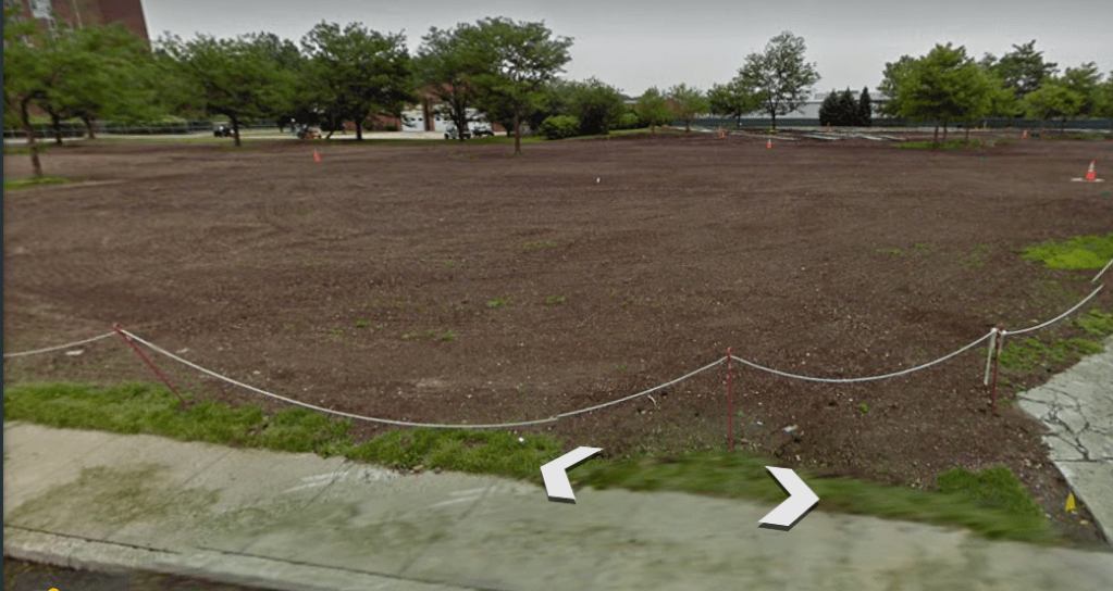 –Fort Tilden on the Rockaway Peninsula in the Lower New York Bay, north of Fort Hancock and Sandy Hook. It is hard to tell what is here because of the tree cover, but you can make some points out here in this photo