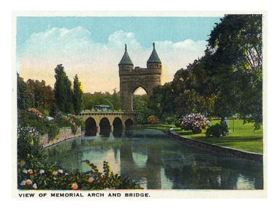 The Bushnell Park arch was said to have been designed by Hartford architect George Keller to honor Hartford citizens who had served in the Civil War. It is called the Soldiers and Sailors Memorial Arch, with the beautiful bridge nearby.