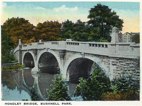 This was Hoadley Bridge in Bushnell Park. When the Park River was created, it is said to have become a pedestrian entrance to the park. It apparently no longer exists in its historical form.