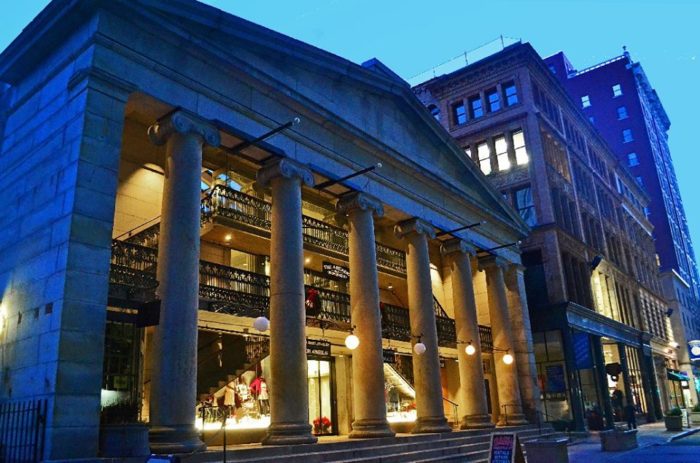 This is the historic Market House in Providence, which was said to have been designed by Declaration of Independence signer Stephen Hopkins, and local architect Joseph Brown, and built in 1775. It was a meeting place for city business until the construction of the City Hall.