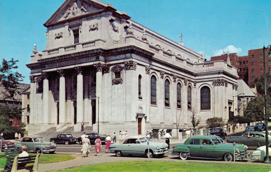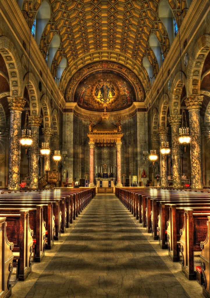 This is the outside of the Basilica of the Immaculate Conception, with its classical-looking Renaissance Revival architectural style.