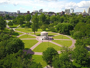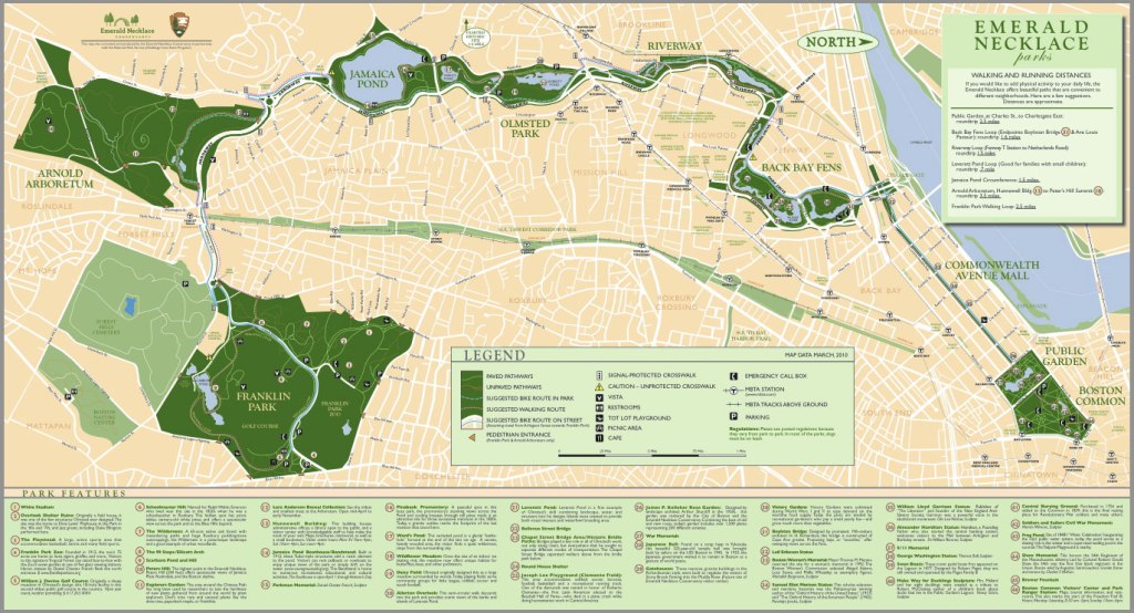The Boston Common and the Boston Public Garden are part of what is called the Emerald Necklace. This is a system of parks said to have been designed by Frederick Law Olmstead in the 1870s to connect the Boston Common to Franklin Park.