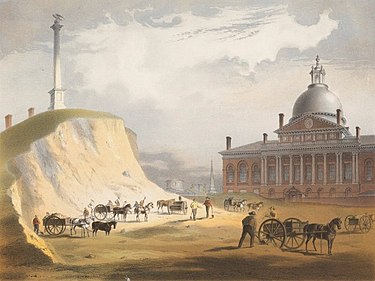 Beacon Hill itself was reduced from 130-feet, or 42-meters, to 80-feet, or 24-meters, between 1807 and 1832.