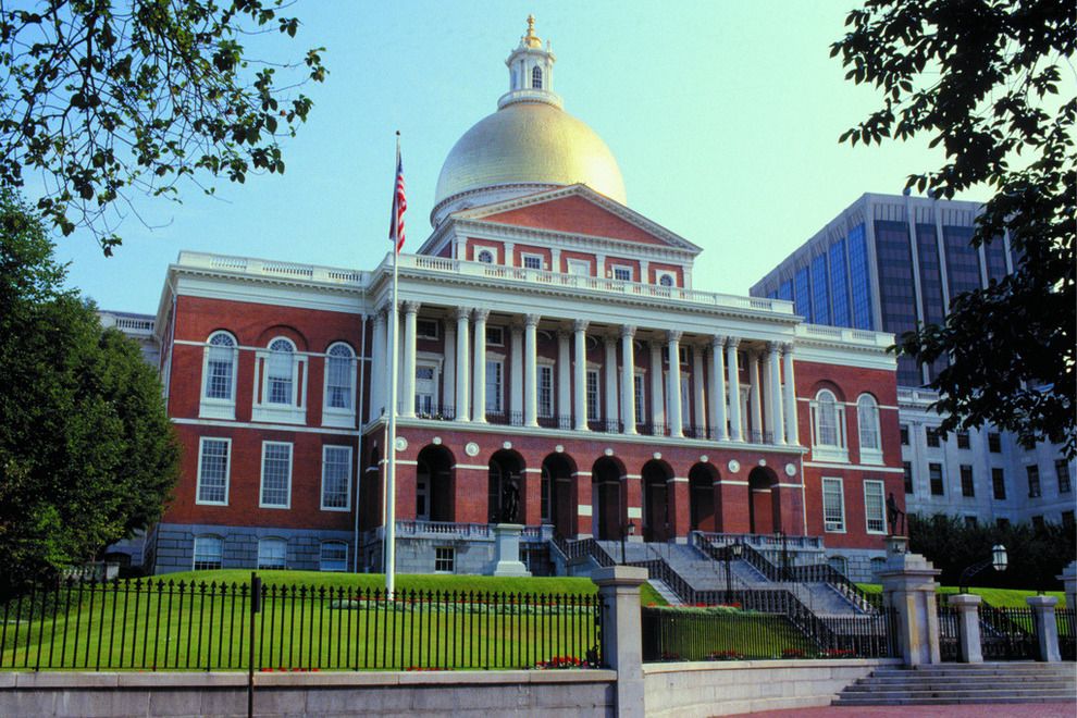 The Massachusetts State House is in the Beacon Hill neighborhood. It was said to have been completed in January of 1798, at a cost of $133,333.