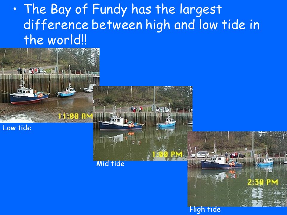It is noteworthy because of its high tidal range. The tides in the Bay of Fundy are semidiurnal, meaning there are two high tides and two low tides each day. The height that the water rises and falls each day is approximately equal.