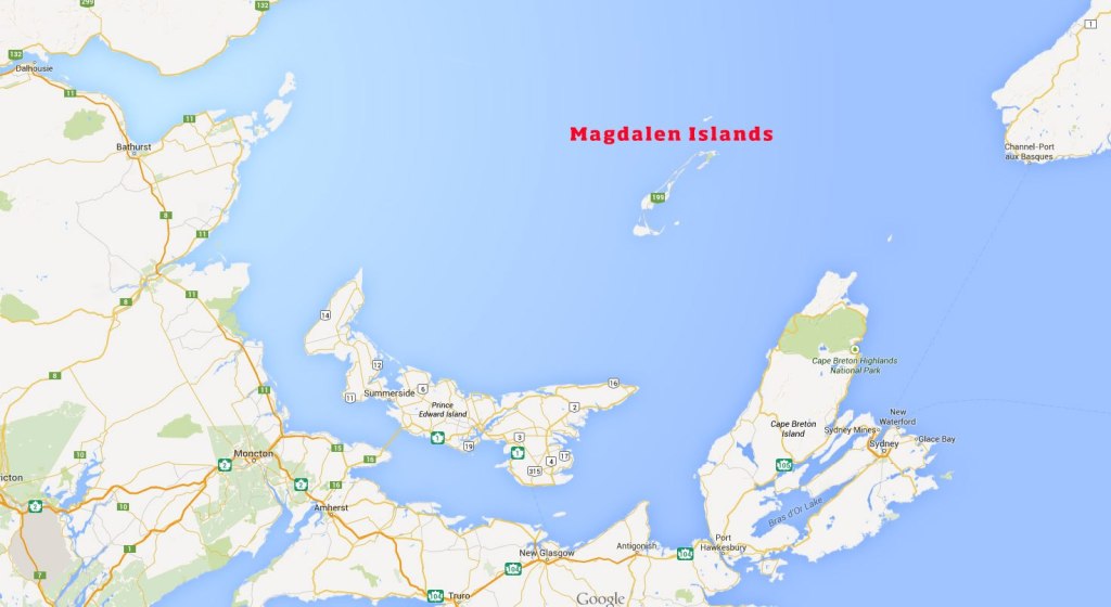 For example, with more examples to come, are the Magdalen Islands, part of the Province of Quebec, which are located in the Gulf of the St. Lawrence, situated just north of, and between the coasts of Prince Edward Island and Nova Scotia.