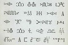 The Mi’kmaq language is an Eastern Algonquin language, and was at one time written in Hieroglyphs. Mi’kmaq hieroglyphic writing is pictured here.