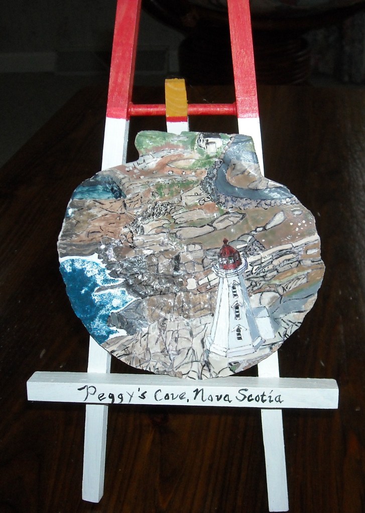 This is an acrylic painting I did on a Digby scallop shell of the lighthouse at Peggy’s Cove, long before I woke up to the information I am sharing with you.