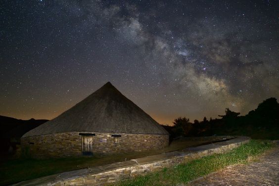 Due to the inaccessibility of the scarce and disbursed population centers of the Galician Ancares, the most traditional features of Galician mountain culture are preserved here, with inhabitants living in direct contact with nature, farming, and gardening. This is a traditional dwelling in the Ancares. Nice view of the Milky Way there too. Hmmm. Might be an ancient connection to all of the pilgrimage routes here….