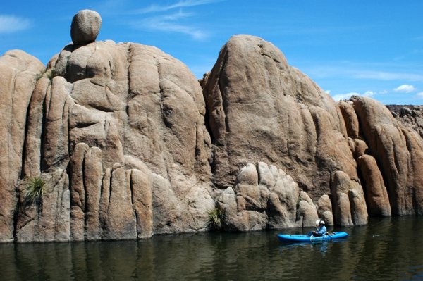 …compared with a picture taken of the Granite Dells in Prescott, Arizona, that also has a balanced rock in it. In the world of geology, that would be called a “glacial erratic.” I am not buying what they are selling.