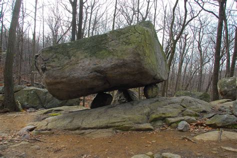 What is called a “glacial erratic,” the product of retreating glacial ice sheets from the Ice Age, like Tripod Rock at the Pyramid Mountain in Kinnelon, New Jersey…