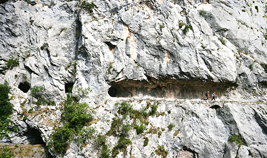 Both places have hiking trails that appear to be carved right out of the rock. This is another view of the Cares Gorge in Spain.