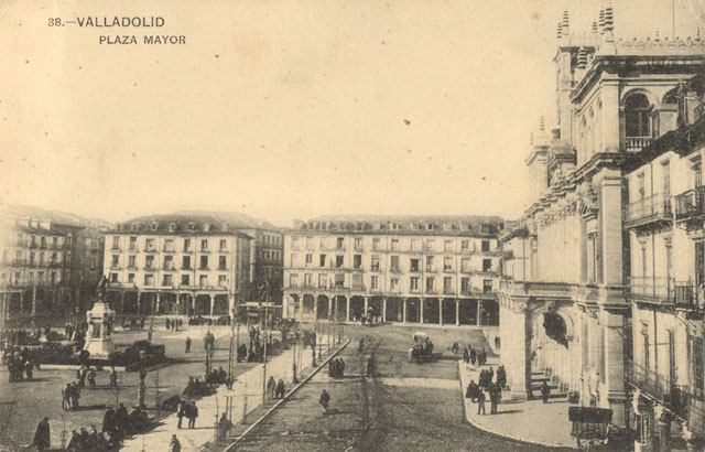 This is an historic picture of the same Plaza Major, with its huge buildings compared to the size of the people in the streets, and not a lot of people here at the time the picture was taken.