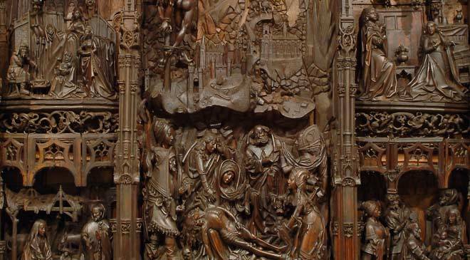One of the exhibits in the National Museum of Sculpture in Vallodolid is an altar-piece depicting the Life of the Virgin, carved out of walnut wood, dating from 1515 to 1520, and originally in the Convent of San Francisco in Vallodolid.