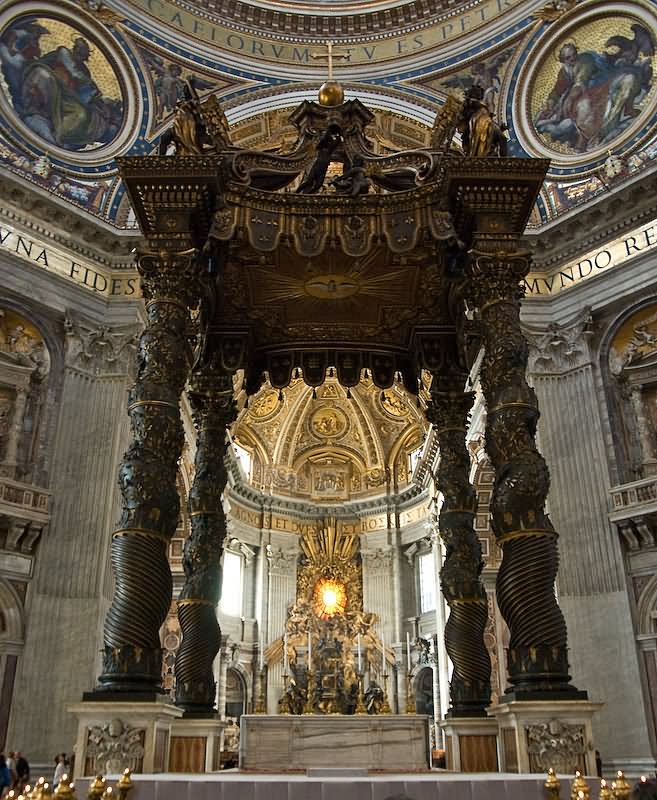 They reminded me of spiralled columns of St. Peter’s Basilica in Rome, called the Baldachin, which is a bronze canopy directly under the dome of the Basilica, and over the high altar, marking the tomb of St. Peter underneath.