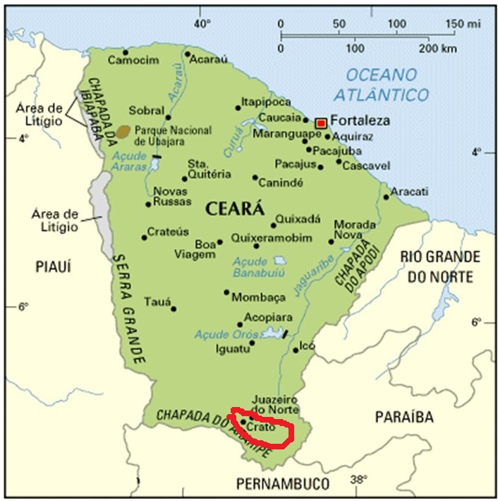 Crato sits on the northeastern edge of the Chapada, or Plateau, do Araripe, on what is called the Crato Formation.