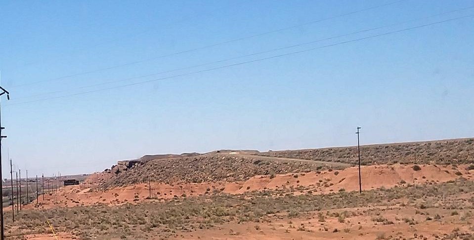 For another example, I had noticed an earthwork embankment on I-40 near the Geronimo Travel Center in northern Arizona as I travelled east. So I stopped on the way back to see what I could see. This was as close as I could get to it.