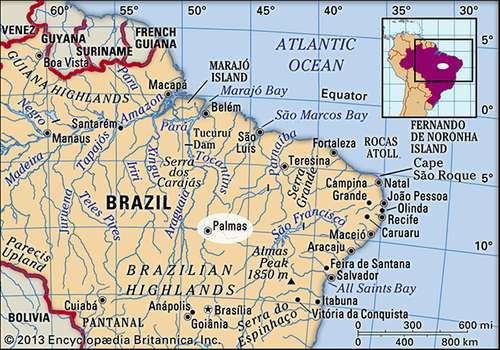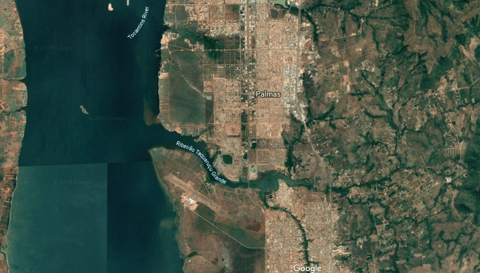 Palmas is bordered on the west by the Tocantins River, the central river in Brazil, running from south to north for 1,522 miles, or 2,450 kilometers.