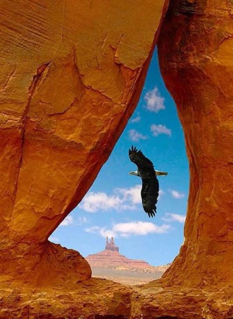 You also see the technique of framing in the capturing of the eagle in between the opening here.