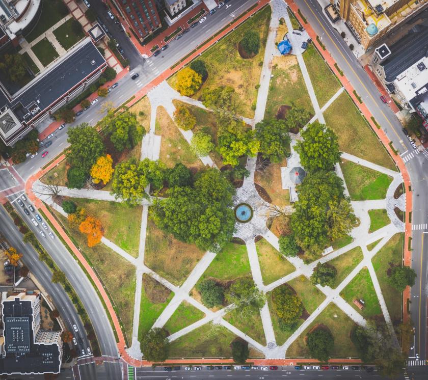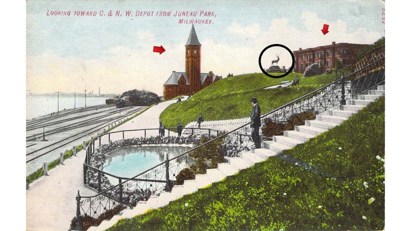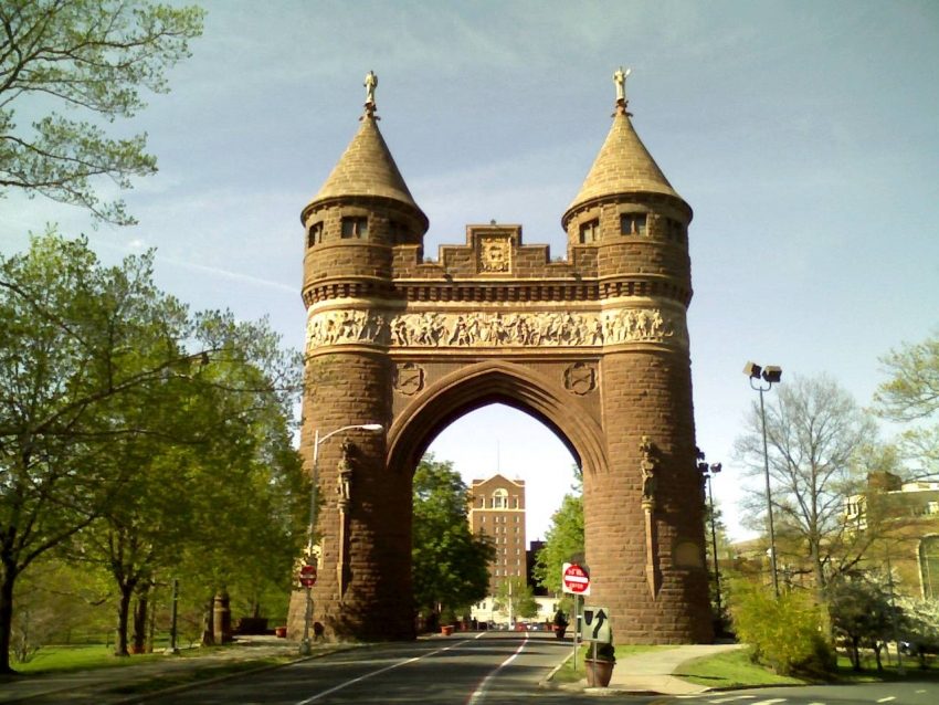 …and the Soldiers and Sailors Memorial Arch in Hartford, Connecticut’s Bushnell Park, framing what is now utilized as an apartment building.
