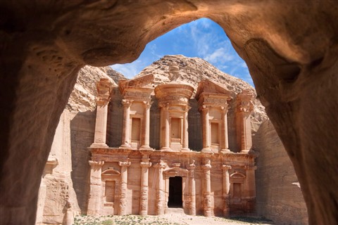 …and in Jordan, at Petra, an ancient city carved right into the rock.