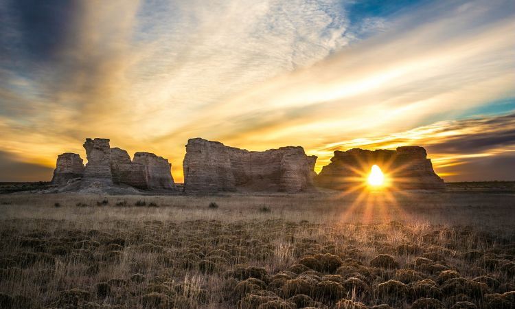 Monument Rocks National Natural Landmark, otherwise known as the Chalk Pyramids, in Gove County, Kansas.
