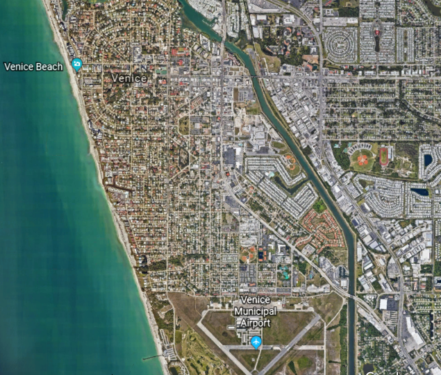 This is a long, straight channel in Venice, Florida, similar to the Brownsville Ship Channel that starts at Port Isabel.